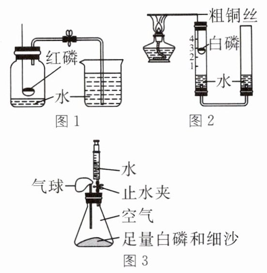 (3)由图可知,用酒精灯加热,铜丝温度升高,达到白磷的着火点,可使其燃烧,粗铜丝的作用是引燃白磷。