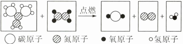 12. “宏观-微观-符号-量”是科学特有的表征物质及其变化的方法。部分火箭助推器使用偏二甲肼和四氧化二氮作为推进剂,燃烧时发生反应的微观示意图如下,下列说法不正确的是( )。