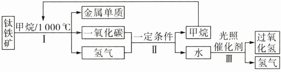 19. (8分)新情境 嫦娥五号 (2024·山东菏泽东明期末)中国探月工程“绕”“落”“回”三步走规划如期完成。“嫦娥五号”带回的月壤中含有大量的钛铁矿。科学家设想的有关人类利用月壤资源的流程图如下(甲烷符号为$CH_{4}$)。