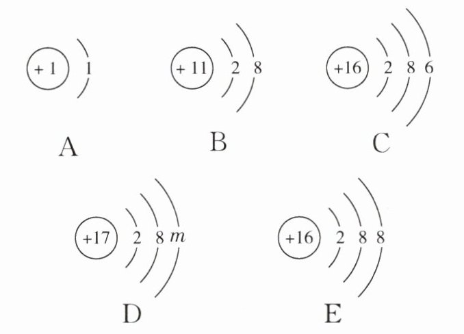 (2)最外层电子数为8的(只有一个电子层时,最外层电子数为2)属于相对稳定结构,A、B、C、E中属于相对稳定结构的是BE。
