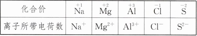 |化合价|$\overset{+1}{Na}$|$\overset{+2}{Mg}$|$\overset{+3}{Al}$|$\overset{-1}{Cl}$|$\overset{-2}{S}$|
