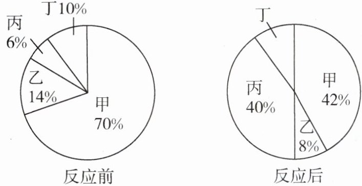 6 跨学科 统计图的应用 (2024·黑龙江中考)密闭容器内有甲、乙、丙、丁四种物质,在一定条件下充分反应,测得反应前后各物质的质量分数如图所示。下列说法错误的是(