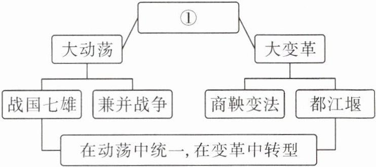 B [解析]根据材料"大动荡""大变革""战国七雄""兼并战争""商鞅变法"等可知,①处是战国时期社会变革。故选B项。