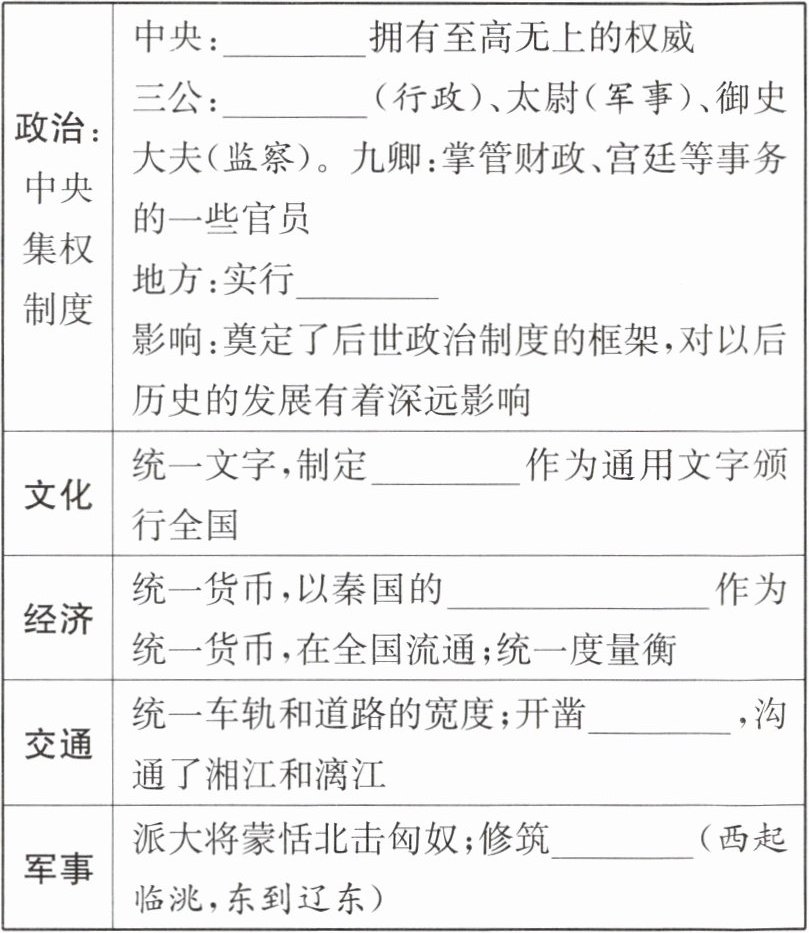 | 经济 | 统一货币,以秦国的 作为统一货币,在全国流通;统一度量衡 |
