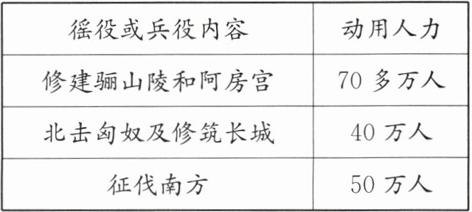 2 原创素养题 历史解释 下表反映了秦始皇大规模征调民力服徭役和兵役的情况。这体现出秦始皇( )
