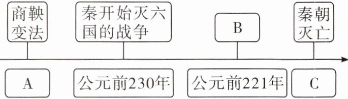 (1)A:公元前 356 年;B:秦朝建立;C:公元前 207 年。公元前 3 世纪。