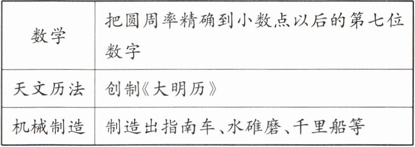4 教材正文改编 下表是某同学整理的有关祖冲之的资料。据此可知,他( )
