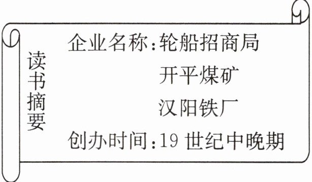 B [解析]结合所学知识可知,从19世纪70年代起,洋务派提出“求富”主张,开办一些近代民用企业,以辅助军事工业。其中比较重要的有轮船招商局、开平煤矿、汉阳铁厂、湖北织布局等。故选B项。