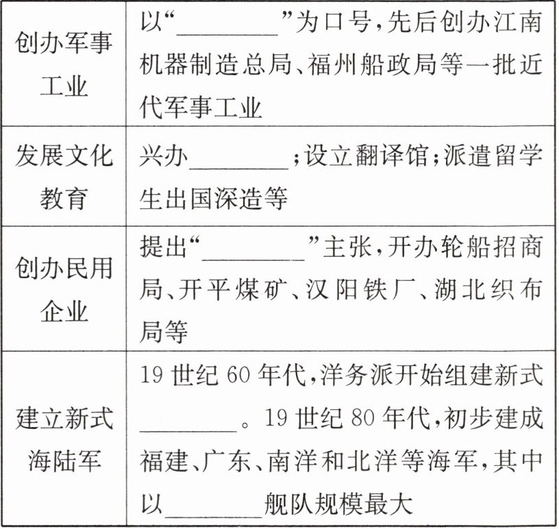 |创办军事工业|以"______"为口号,先后创办江南机器制造总局、福州船政局等一批近代军事工业|