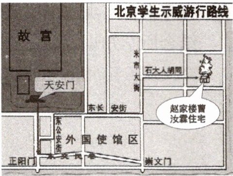 7 新情境 游行路线 如图反映了某场运动中北京学生示威游行路线。该运动是( )