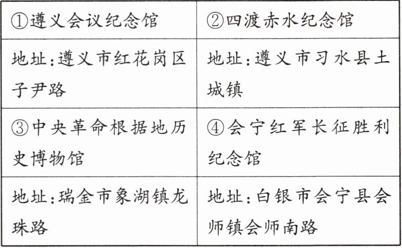 |①遵义会议纪念馆|②四渡赤水纪念馆|