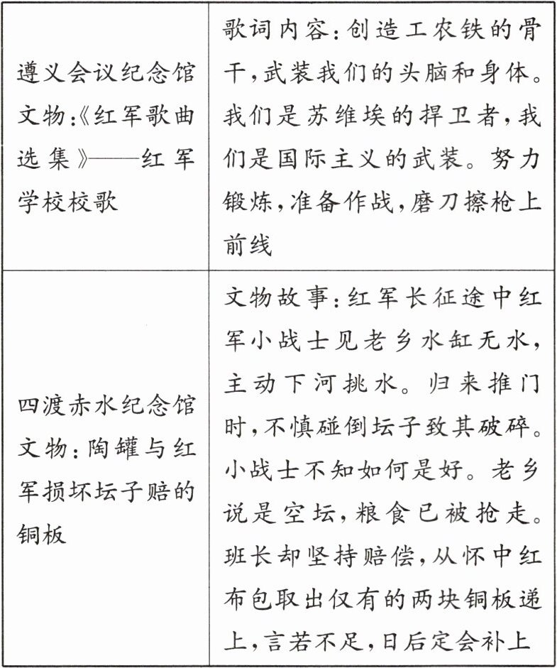 【实地考察阶段】材料二 小明同学在贵州地区研学笔记|遵义会议纪念馆文物:《红军歌曲选集》——红军学校校歌|歌词内:创造工农铁的骨干,武装我们的头脑和身体。我们是苏维埃的捍卫者,我们是国际主义的武装。努力锻炼,准备作战,磨刀擦枪上前线|