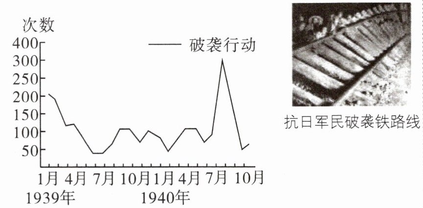 5 (2024·陕西中考)下列分别是我抗日军民在华北破袭铁路统计图和破袭铁路线场景。场景反映的破袭行动高潮出现在( )