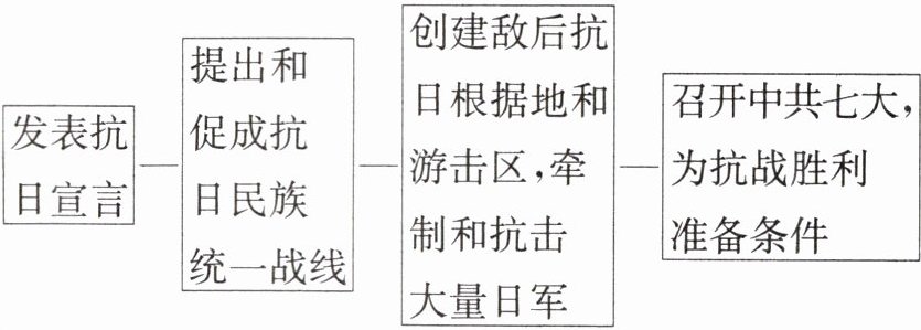 发表抗日宣言 提出和促成抗日民族统一战线 创建敌后抗日根据地和游击区,牵制和抗击大量日军 召开中共七大,为抗战胜利准备条件