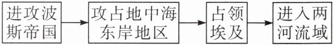 进攻波斯帝国→攻占地中海东岸地区→占领埃及→进入两河流域