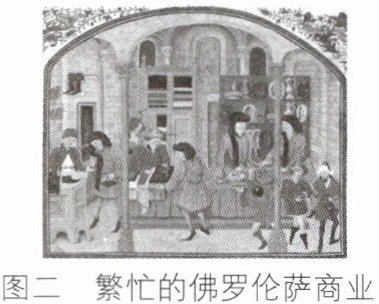 (2)以人为中心的生活哲学(或人文主义思想);提倡发扬人的个性,追求享受现世生活。佛罗伦萨金融业、毛纺织业发达,财富不断积累;资本主义萌芽出现;古希腊罗马文化的影响;城市生活活跃;等等。