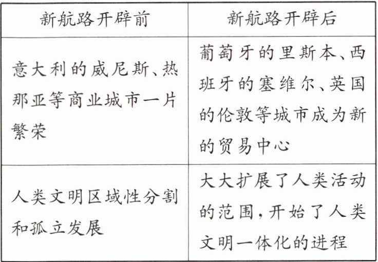(3)新航路开辟前,意大利的威尼斯和热那亚等商业城市是欧洲的主要贸易中心;新航路开辟后,欧洲的贸易中心转移到了葡萄牙的里斯本、西班牙的塞维尔和英国的伦敦等城市。