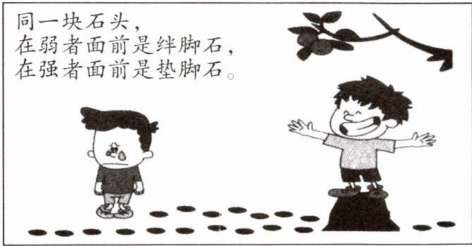 D [解析]本题考查增强生命的韧性。同一块石头,在弱者面前是绊脚石,在强者面前是垫脚石,启示我们面对困难和挫折,态度不同,结果可能就会不同,要保持乐观向上的人生态度,勇敢面对困难和挫折,③④正确;“战胜一切困难”的说法太绝对,把挫折当作垫脚石,有利于战胜困难,①错误;“就能”的说法太绝对,努力奋斗有利于取得好成绩,②错误。