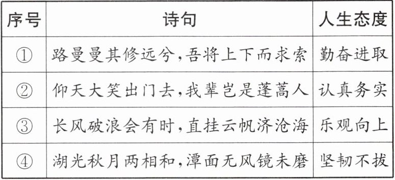 11 (2025·江西新余期末)积极的人生态度,会让人热爱生活,对未来充满信心。下列诗句与所体现的人生态度相匹配的有( )