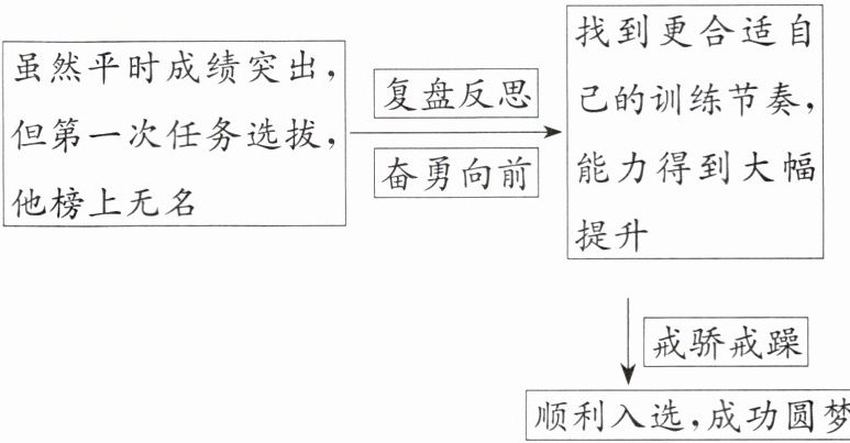 (2)顺境和逆境对人生的作用都是双重的。①顺境不骄。顺境中的有利因素,使我们更容易接近和实现目标。身处顺境时,我们应珍惜美好时光,抓住机遇,顺势而为;同时,我们要有忧患意识,警惕优越条件滋生的骄傲、懈怠等不良心态,时刻保持谦虚谨慎的态度。②逆境不馁。每个人都希望自己的人生一帆风顺,但是生活中难免会遇到各种各样的困难。在逆境中前行,需要鼓足勇气,迎难而上。在青少年时期经历一些挫折和考验,有助于我们走好人生路。