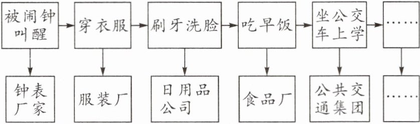 |被闹钟叫醒|→|穿衣服|→|刷牙洗脸|→|吃早饭|→|坐公交车上学|→|……|