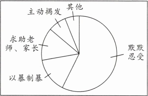 (1)①面对校园欺凌,大部分学生选择“默默忍受”,忍气吞声;不少学生选择“以暴制暴”,进行报复。只有少部分学生选择求助家长或老师,而选择主动揭发或其他做法的则更少。②说明当前许多中小学生缺乏自我保护意识,在遇到校园欺凌时不懂得运用法律武器保护自己。(现象2分,本质2分)