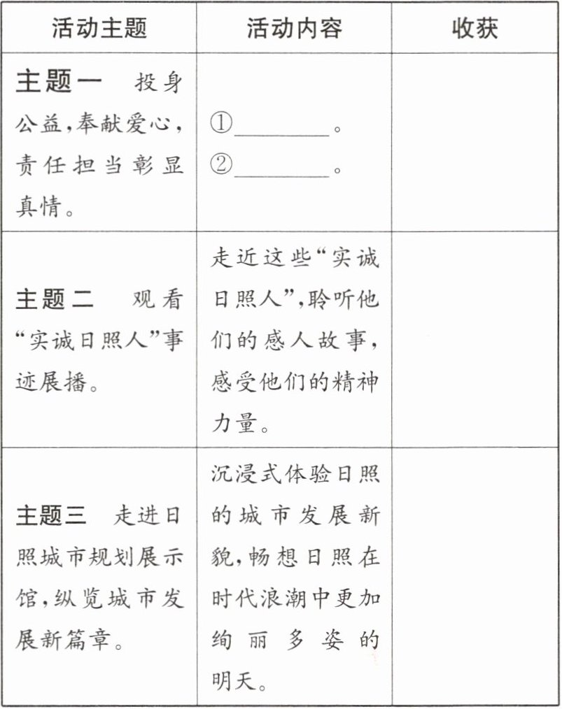 |主题一 投身公益,奉献爱心,责任担当彰显真情。|①______。