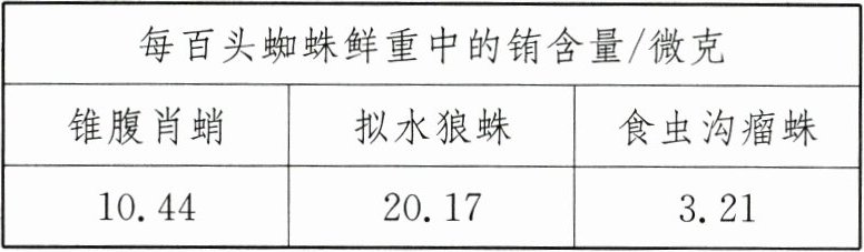 |每百头蜘蛛鲜重中的铕含量/微克| | | |