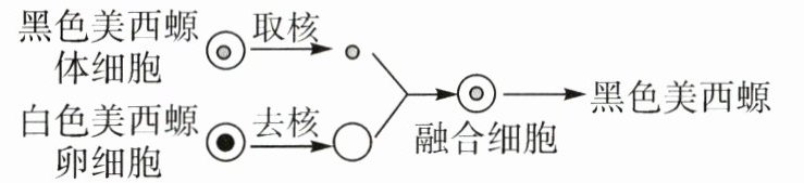 3. 将黑色美西螈的体细胞核移植到白色美西螈的去核卵细胞中,形成融合细胞。在适宜的环境中,融合细胞发育成黑色美西螈个体。这说明控制美西螈皮肤颜色遗传的是( )。