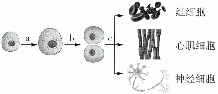 C [解析]a过程表示细胞生长,b过程表示细胞分裂,c过程表示细胞分化,细胞分化过程中,细胞的遗传物质没有发生变化,C错误。