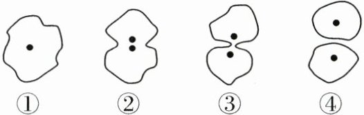 9. 下图是变形虫细胞的分裂过程示意图,按细胞分裂的先后顺序排列,正确的是( )。