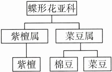 20. 下图是蝶形花亚科部分植物分类图解,据此分析错误的是( )。