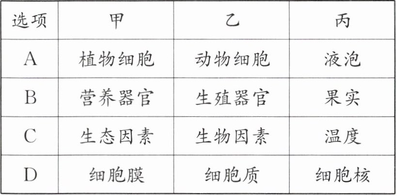 6 (2024·山东济宁任城区期末)框架图是帮助我们理解生物学概念的有效方法,下列选项符合框架图中甲、乙、丙的对应关系的是(