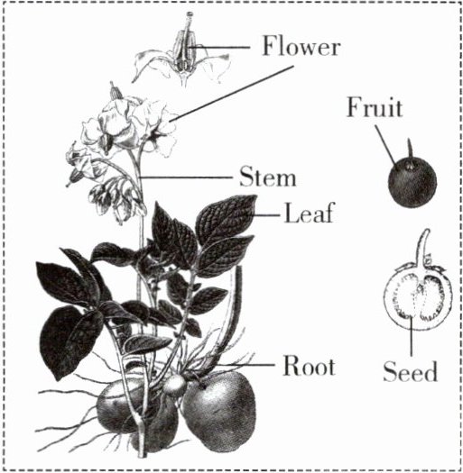 4 跨学科 植物器官英文识记 小林同学在一本英文科普书中看到一幅马铃薯图片(如图)。马铃薯植株的下列器官中,属于生殖器官的是(