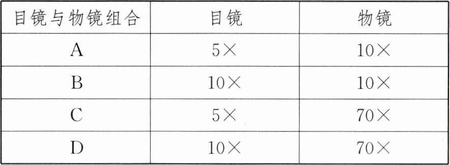 (2)下表是小明同学观察时使用的四种不同的目镜和物镜组合,哪一组合观察到的细胞数目最少?____。