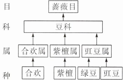 21(2024·苏州中考)科学家常用豆科植物研究感夜运动,下图是部分豆科植物的分类图解,其中亲缘关系最近的是(