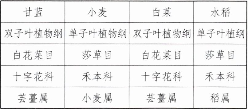 18 (2025·山西吕梁兴县月考)下表列出了四种植物在分类学上的地位,其中亲缘关系最近的两种植物是(