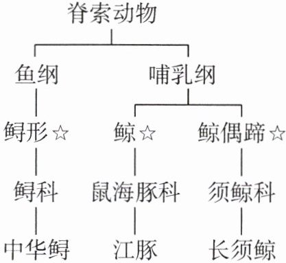 17 (2025·南通期末)南通博物苑里陈列有中华鲟江豚和长须鲸的标本。如图为它们的分类等级示意图相关叙述正确的是(