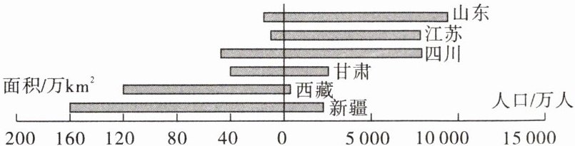 下图为我国部分省区人口和面积统计示意图。读图回答 6~7 题。