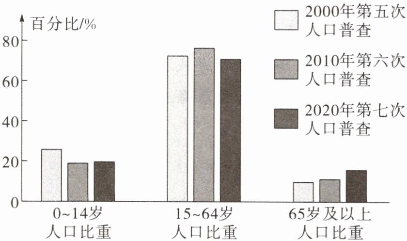 (2024·黔东南州中考)我国从2016年起全面实施“两孩”政策,2021年起实施“三孩”政策。下图为我国第五次~第七次人口普查数据统计图。据此回答9~10题。