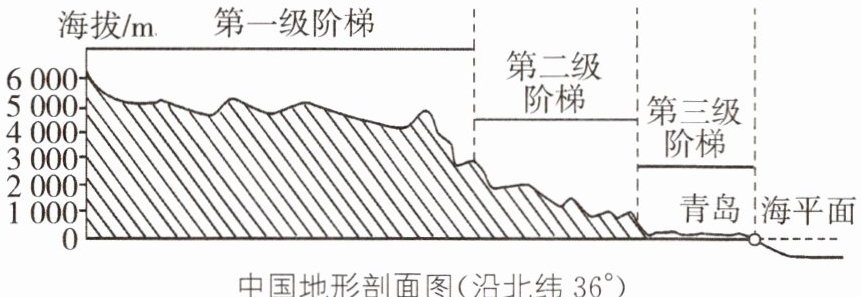 教材P24图2.1·改编 “一江春水向东流”“百川东到海”等诗句反映了我国的地势特征。读我国沿北纬36°纬线的地形剖面图,回答1~2题。