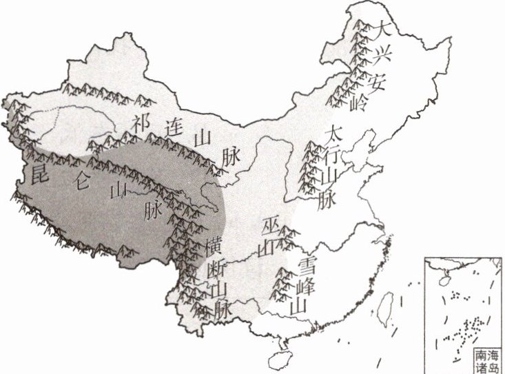 1 图示反映我国地势分布的总体特是______、呈______状分布。