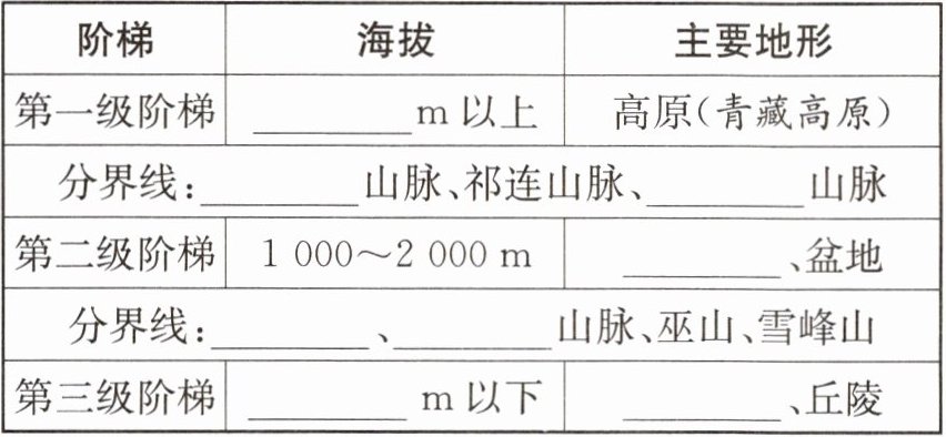 |第一级阶梯|______m以上|高原(青藏高原)|