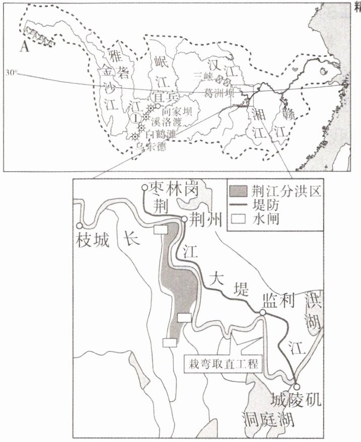 12 读长江水系图、荆江河段图和相关材料,回答下列问题。