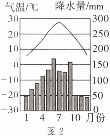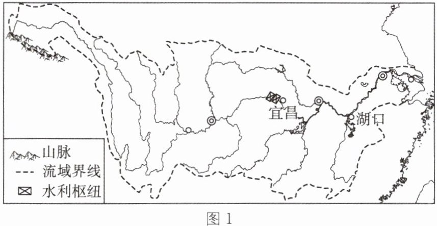 (2)结合图 2,分析长江的水文特征。(从流量、汛期、结冰期等方面说明)