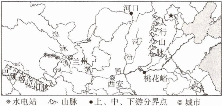 1 河口属于 ______(填省区),桃花峪属于 ______ 省。源头—河口为黄河上游河段;河口—桃花峪为黄河中游河段;桃花峪—入海口为黄河下游河段。