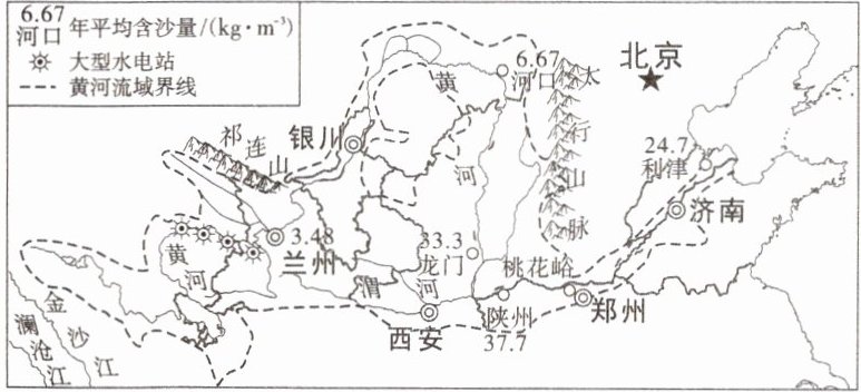 |中游|流经黄土高原地区,土质疏松,植被破坏严重,______严重|开展______综合治理;利用小浪底等水利枢纽联合调水调沙|