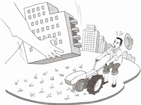 跨学科 漫画《飞来的山峰》 习近平强调,粮食安全是“国之大者”,耕地是粮食生产的命根子。中国共产党始终高度重视耕地保护问题。目前,我国土地资源破坏现象严重。读漫画《飞来的山峰》并结合所学知识,回答6~7题。