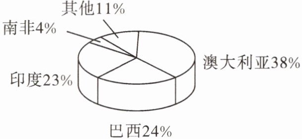 教材P73图3.19·改编 中国是世界上钢铁生产和消费大国,每年需要大量进口铁矿石。读中国铁矿石进口结构图,回答3~4题。
