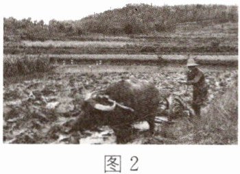 (3)题,图2为水牛春耕景观图,该照片拍摄地耕地类型为水田。第